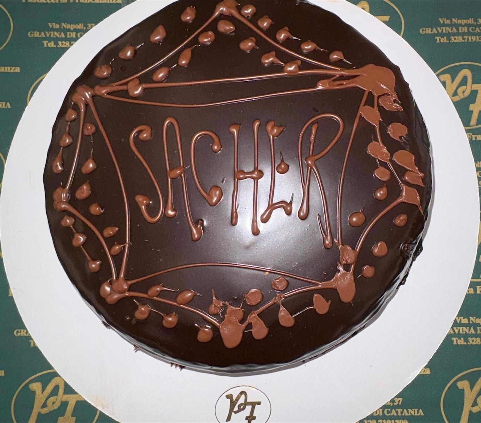 Un impasto di cioccolato profumato al Grand Marnier, farcito con Nutella alle nocciole e avvolto in cioccolato con una decorazione di granelli di noccioline.